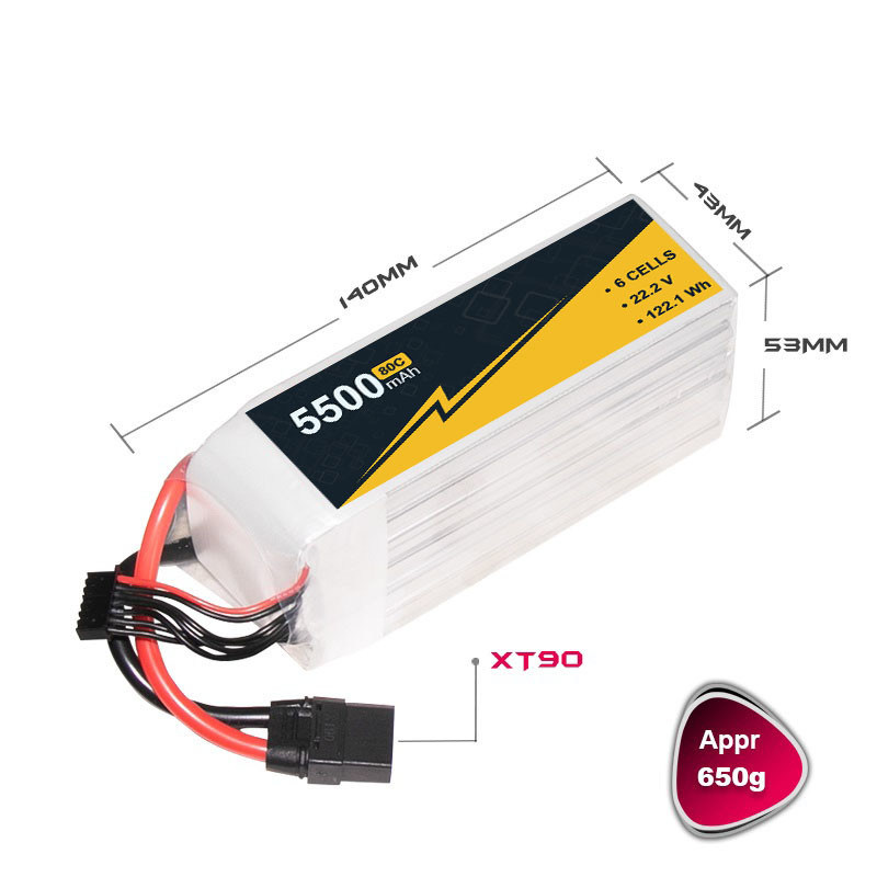 5500mAh 22.2V 6s लीपो बैटरी 130C FPV लीपो बैटरी के लिए